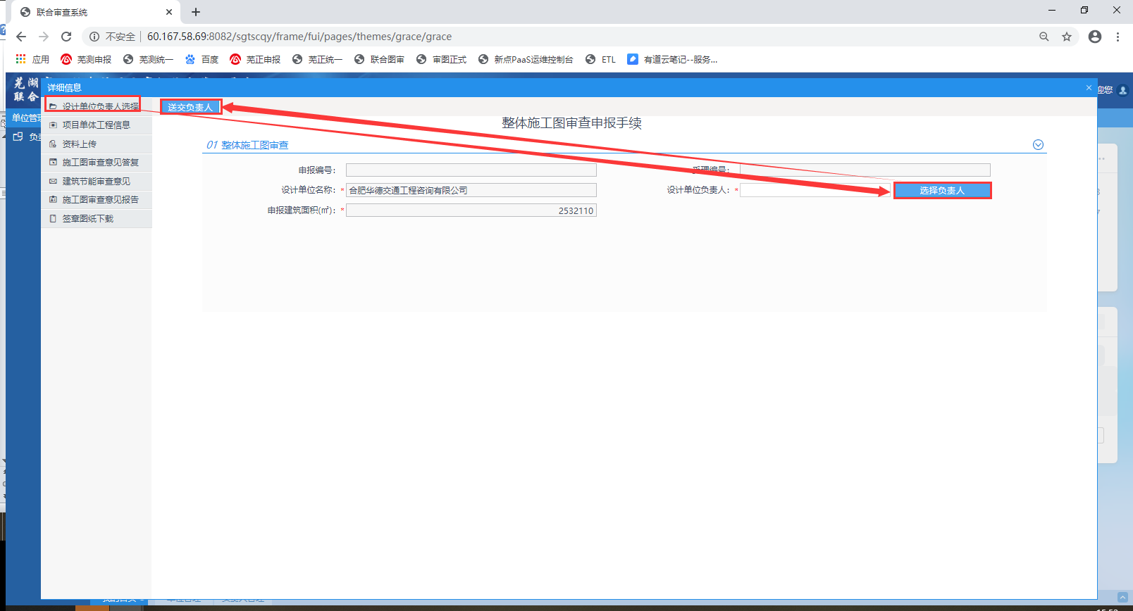默认进入设计单位负责人选择页面,如下图,选择负责人后点击“送交负责人”按钮即可。