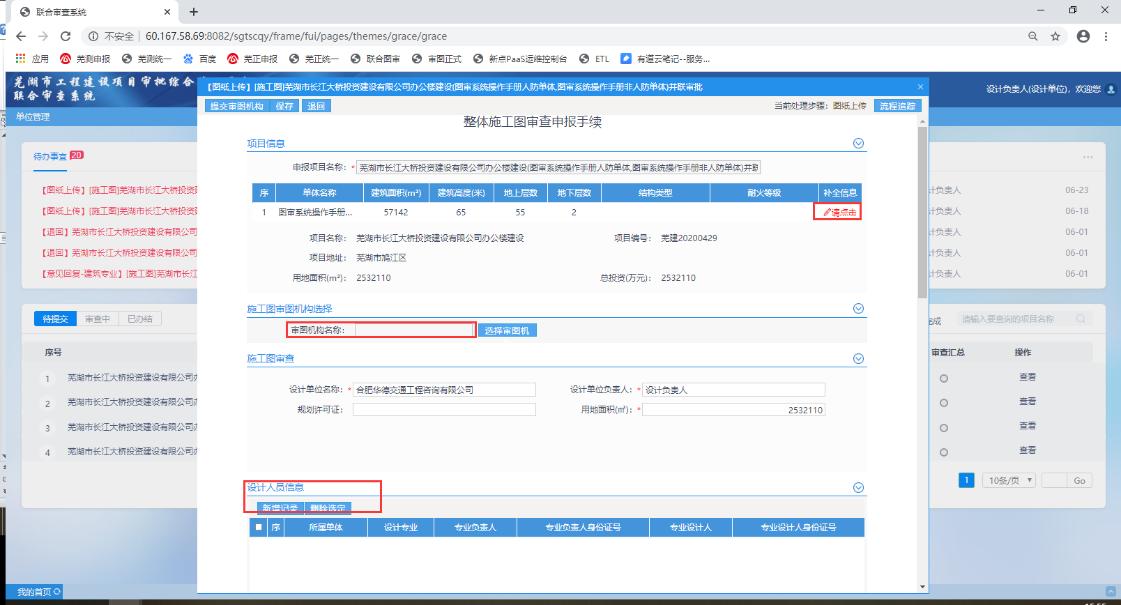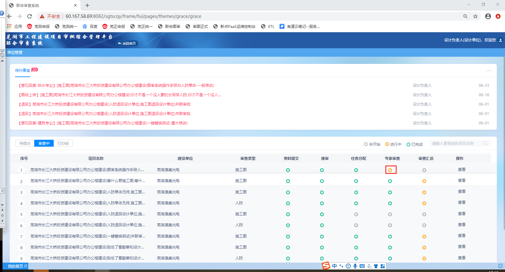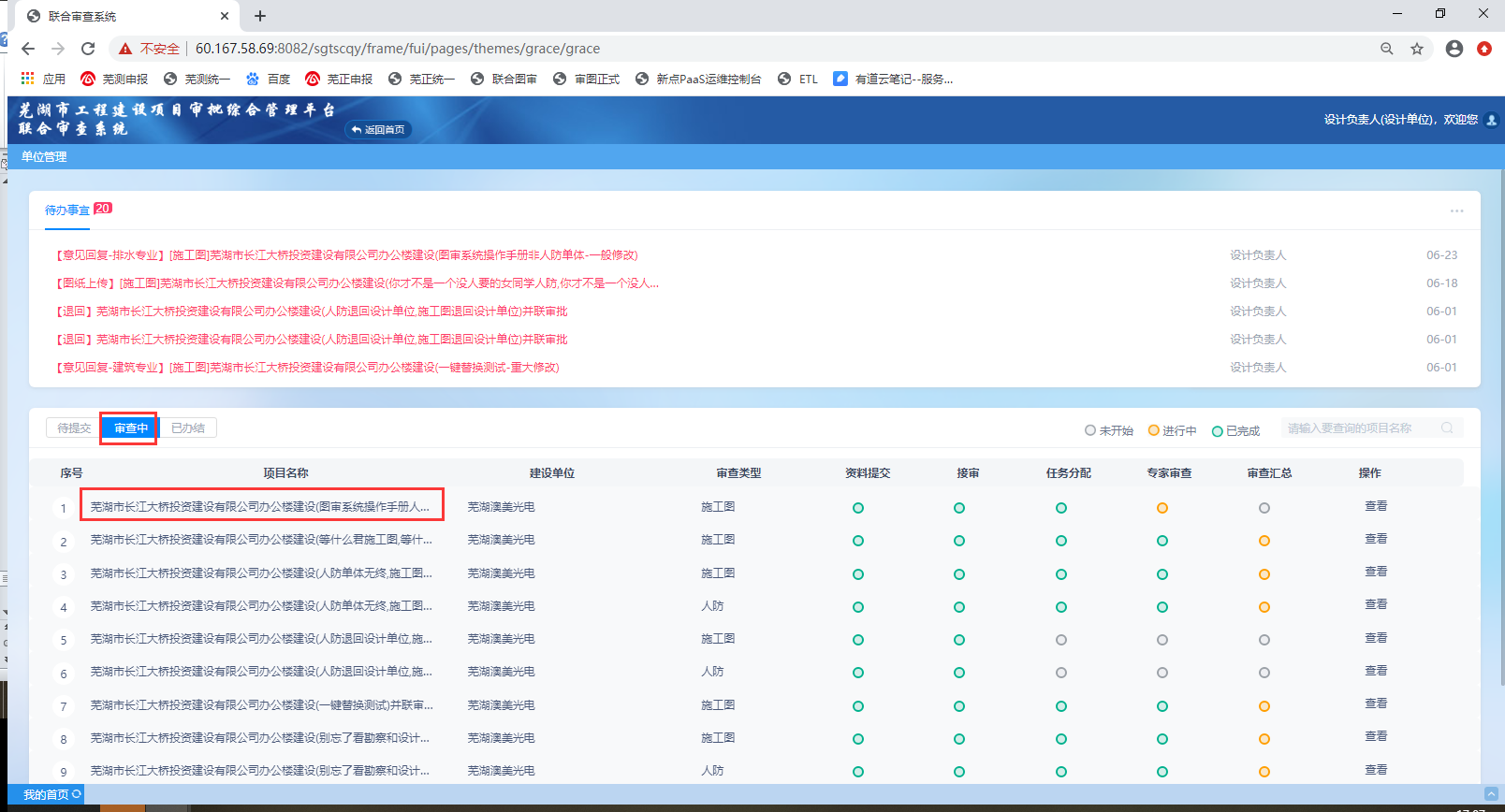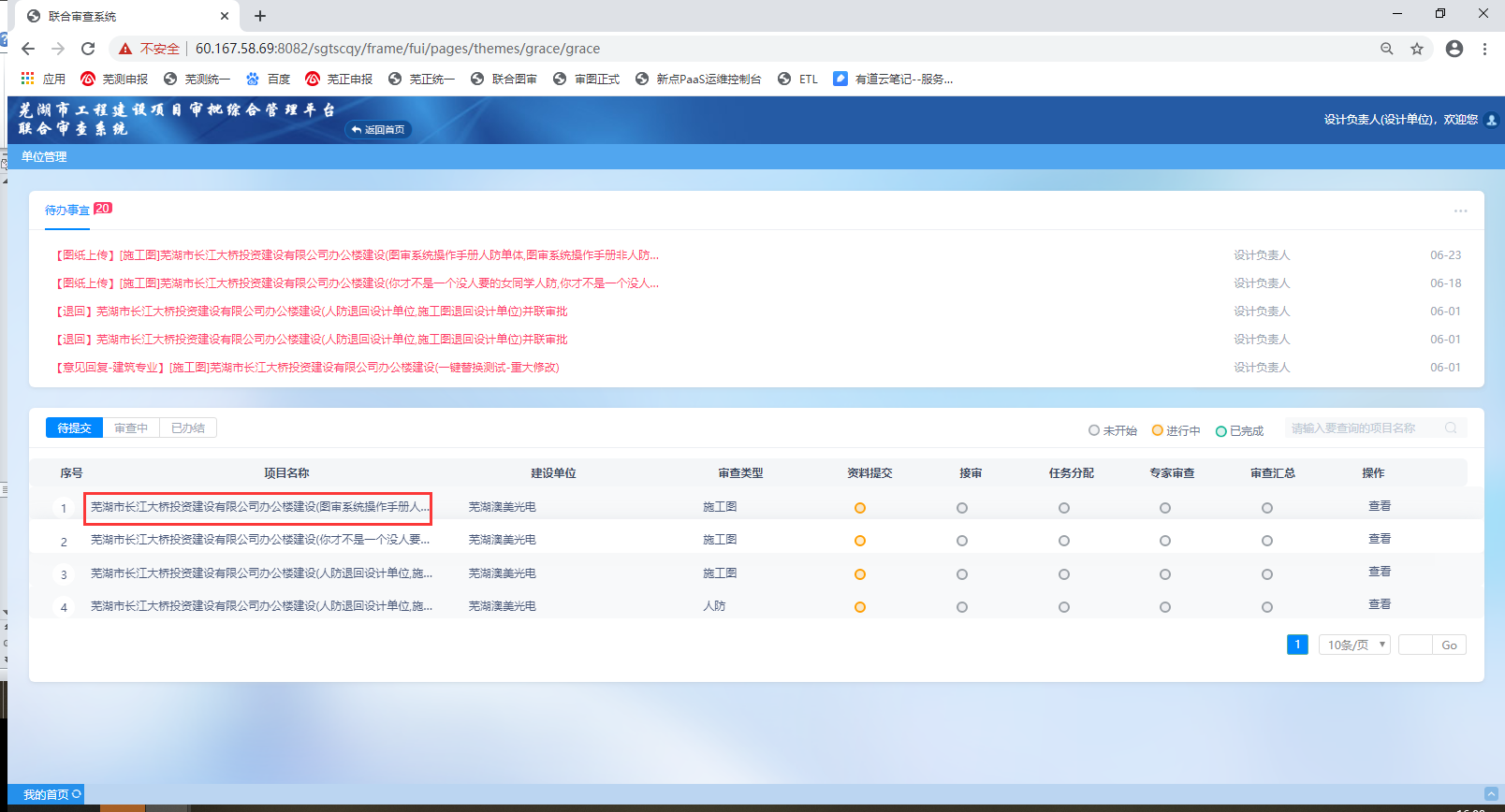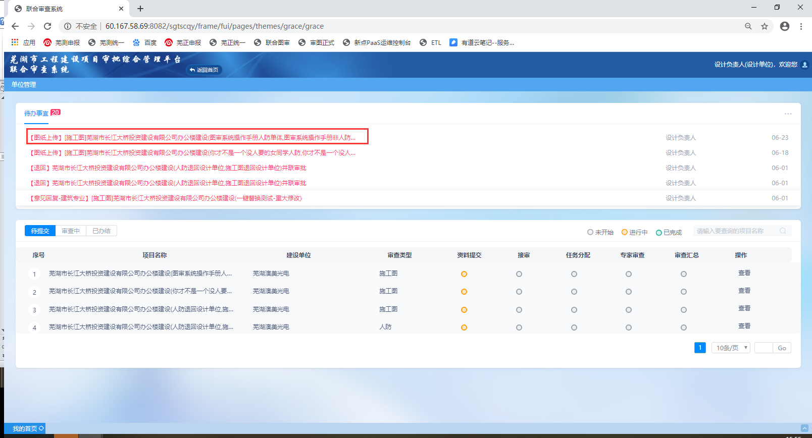 设计单位主账号登录系统后,在首页——待办事宜中显示该人员所有代办。