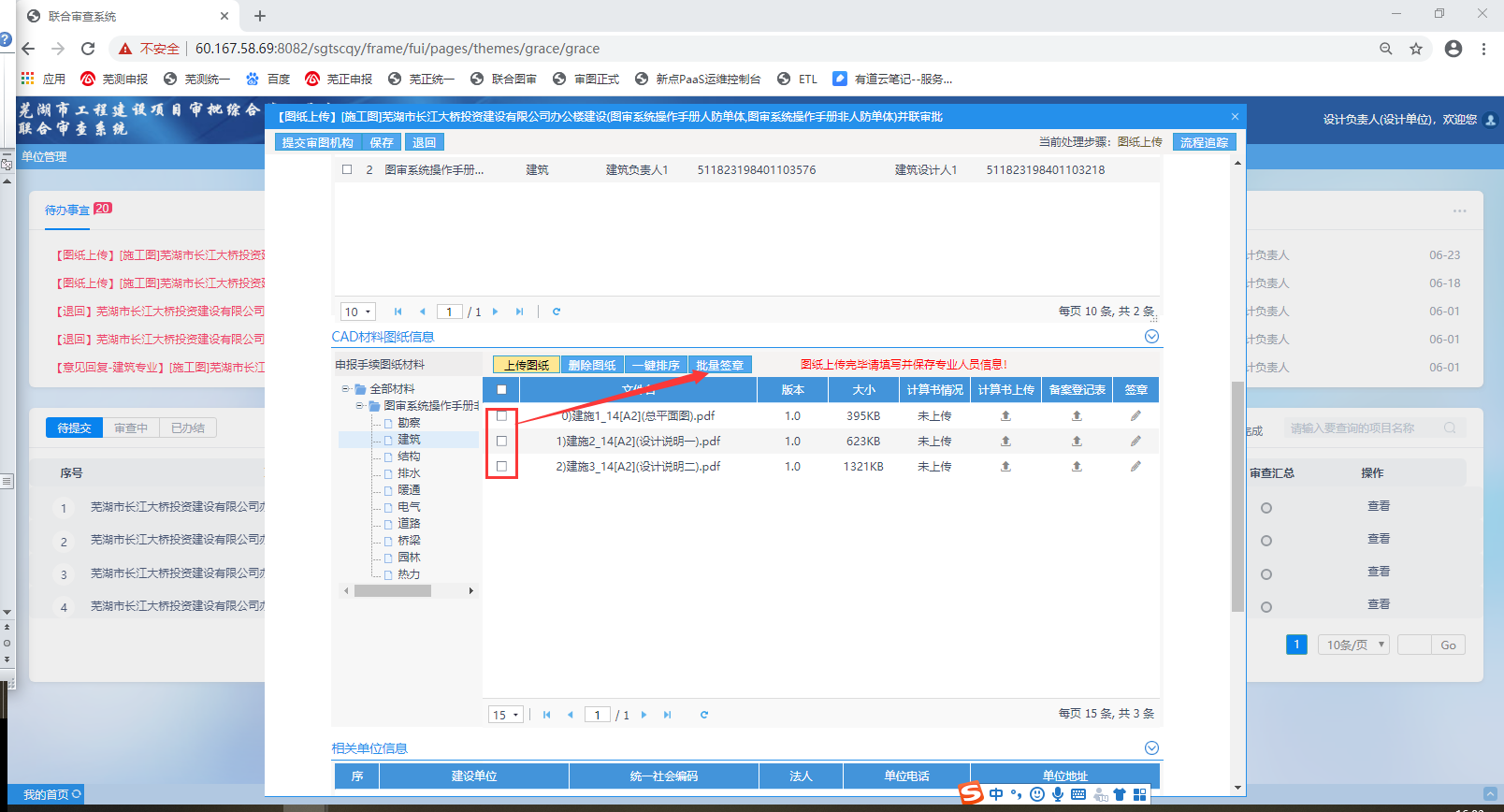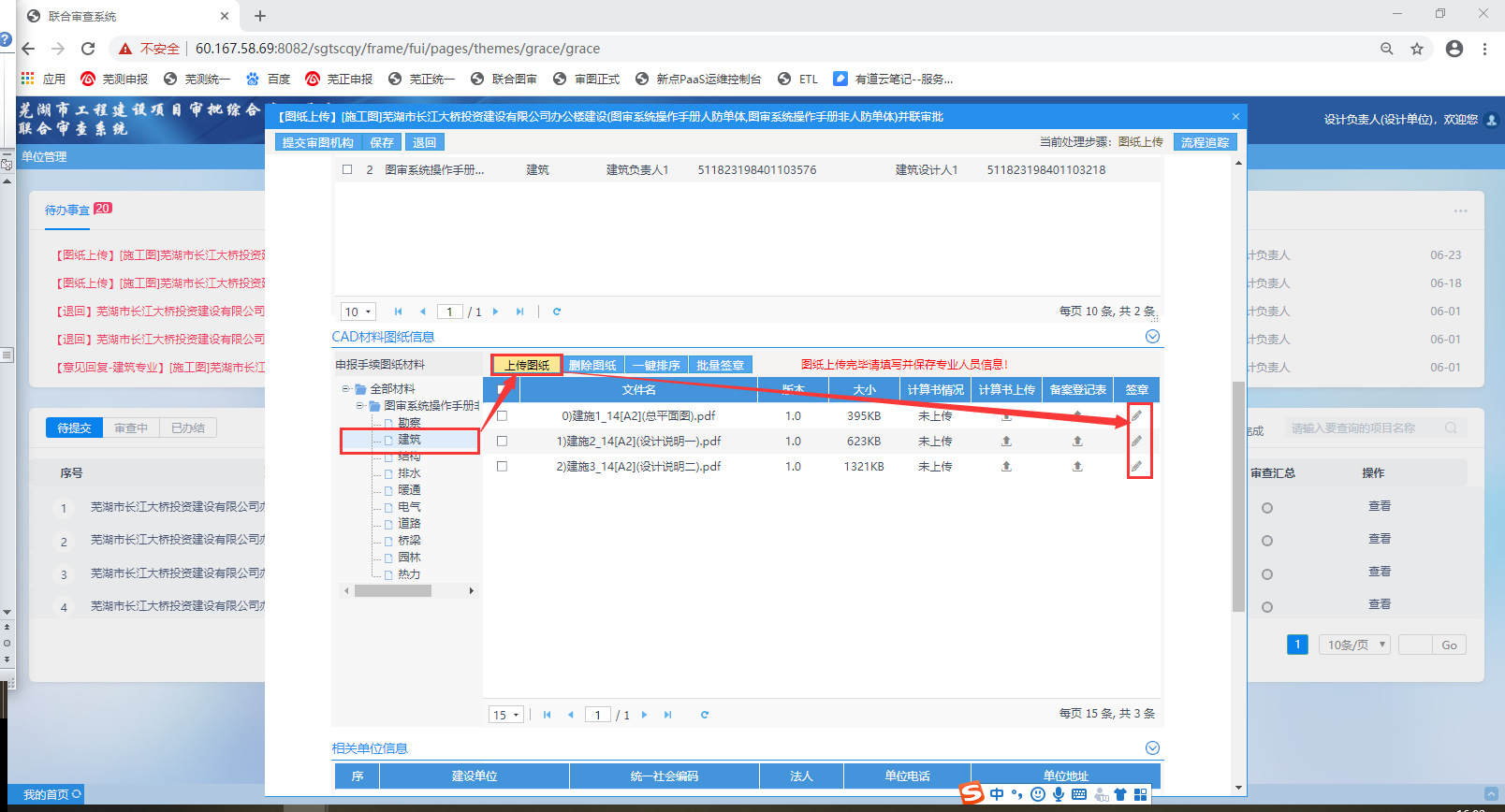 设计单位在施工图联合审查中需要上传图纸,完善单体信息,图审人员审核图纸审核过程中如果有修改,需要设计单位重新修改图纸进行上传。