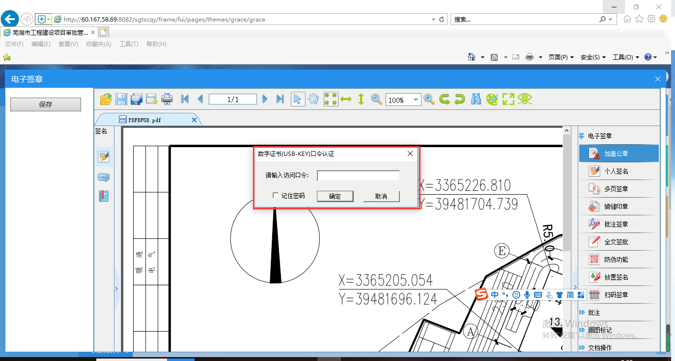 4、密码输入完成后,电子签章会显示在页面上,随鼠标移动,可以移动鼠标,将电子签章加盖在需要盖章的地方