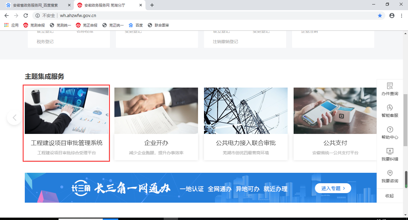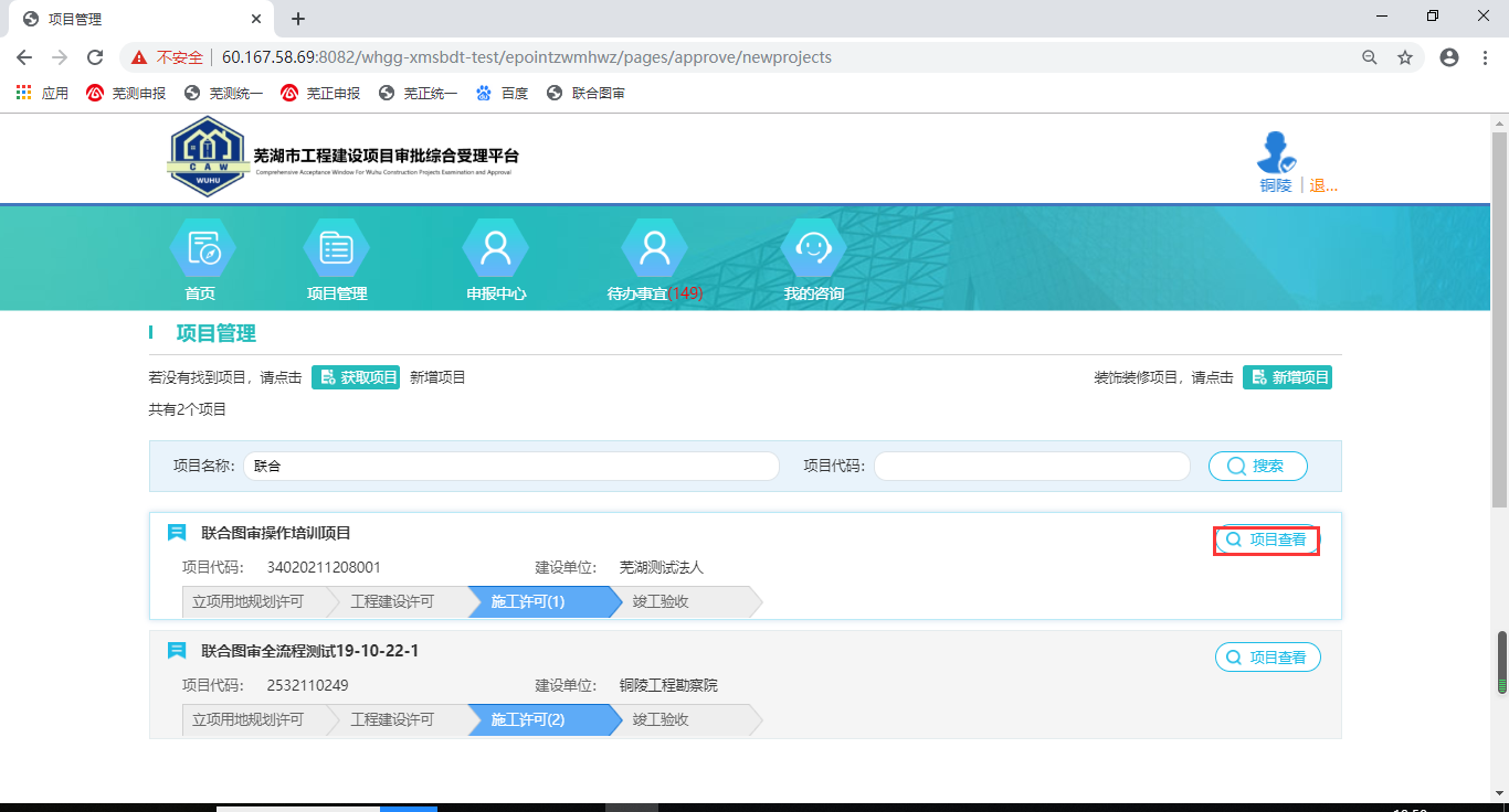 登陆成功后,点击工程建设项目系统,如下图红色框比较的图标: