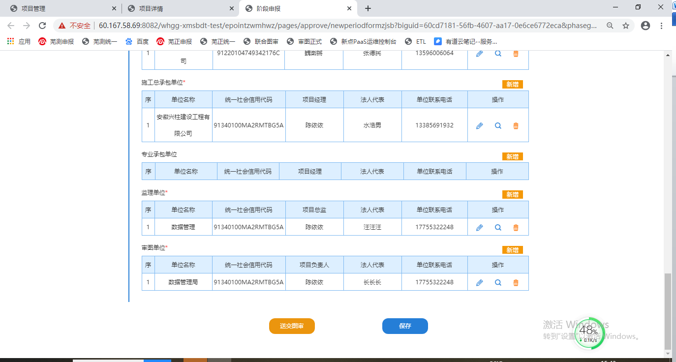 单位信息中必须填写建设单位、设计单位、审图单位、有勘察单位一定要填写,部分项目不涉及勘察单位的不用填写。